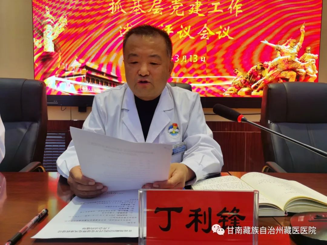 党总支书记丁利锋同志对各党支部书记述职情况逐一进行点评。他充分肯定一年来各党支部党建工作取得的成效,并指出存在的问题和不足。就如何进一步加强基层党建工作,他提出四点要求:一是严要求加强政治建设。要深刻领会习近平总书记关于机关党建重要论述,牢固树立抓好党建就是最大政绩的意识,真正把增强“四个意识”、坚定“四个自信”、做到“两个维护”体现到藏医药工作的各领域和全过程。结合“三会一课”、主题党日活动和“五无医院”创建活动,推动学习型医院、学习型党组织建设。把学习好贯彻好党的二十大精神作为首要政治任务,持续兴起学习宣传贯彻党的二十大精神热潮。全面落实意识形态工作责任制,管好守牢民族医疗领域意识形态阵地。二是高质量落实党建责任。各支部书记要充分发挥“头雁”作用,切实把基层党建工作摆上重要位置,抓在手上、落到实处,认真谋划好今年党建工作。认真召开组织生活会,将查摆出来的问题抓好整改,举一反三,建章立制,巩固深化整改成效。扎实开展“三抓三促”行动,推动全院上下在学习上下苦功、在执行上铆足劲、在效能上见真章,着力提高思想水平、政策水平、业务水平,大力发扬高度负责、敢于担当、勇于创新精神,持续强化敢抓敢管、动真碰硬、立说立行、精益求精的作风,推动各项工作任务落实落细。三是多举措筑牢组织基础。严格落实“三会一课”、主题党日等党内组织生活。加强党务干部培训,提升党务工作水平,夯实党建工作基础。四是强化正风肃纪,持续深入开展廉政教育,不断涵养政治生态。坚持严管与厚爱并重,激励与约束并存,加强党员干部教育管理,充分激发党员干部干事创业、担当作为的动能和活力,为促进藏医药各项事业高质量发展贡献力量。