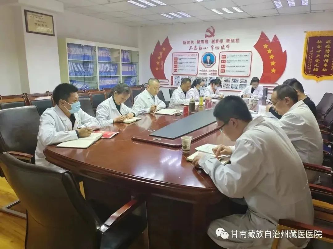 3月22日下午,甘南州藏医医院行政科研党支部召开2022年度组织生活会暨民主评议党员大会,州卫健委党组成员、副主任孙小勇到会指导,院党总支书记丁利锋、副院长道吉仁青以普通党员身份参加会议,医院支部、药厂药浴支部书记应邀列席会议。
