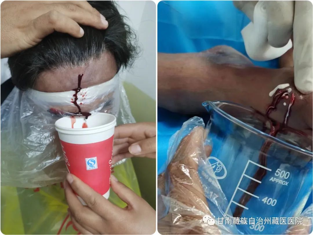 适应症:凡是扩散伤热、瘟疫、祛除时疫后的成熟热及血或赤巴引起的炎肿、陈疮、痛风、疖痛、肝炎、脾炎、麻风病、血紊乱症等疾病均可施用放血疗法。但是事先未分离病血或者是未成熟的瘟热、虚热、毒尚未消除的中毒症、疫热及体质衰弱患者不能施用放血疗法。
