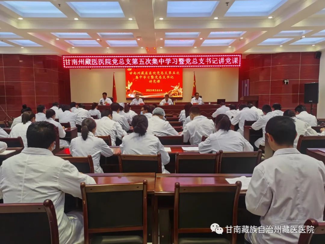 5月6日,甘南州藏医医院召开党总支第五次集中学习暨党总支书记讲党课会议,会议由党总支书记丁利锋主持,院领导班子、全体干部职工共计80余人参加会议。