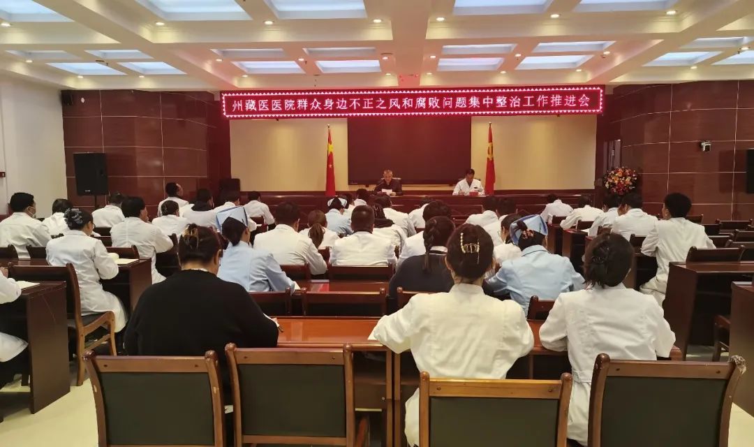 为扎实推进我院医疗领域群众身边不正之风和腐败问题集中整治工作,进一步加强医德医风建设,从严规范医务人员执业行为,全面提升人民群众看病就医获得感、幸福感、安全感。6月12日,甘南州藏医医院召开群众身边不正之风和腐败问题集中整治工作推进会。会议由党总支书记李盛森主持,院班子成员、全体党员及中层干部参加会议。