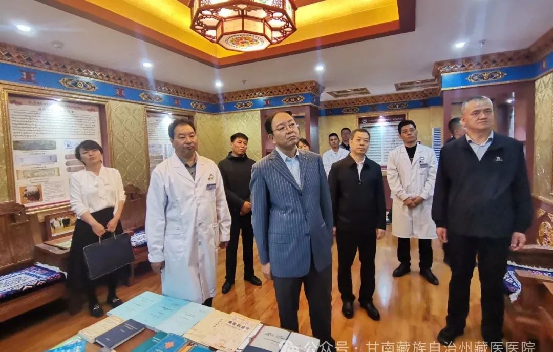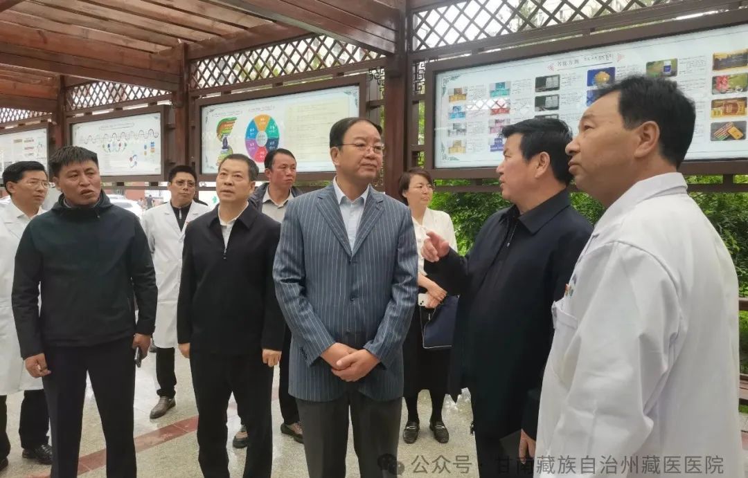 7月24日,省科协主席张世珍,第一副主席包俊宗一行在州科协主席赵凌平的陪同下来我院调研指导藏医药文化科普工作。州卫健委党组书记、主任马彪顺,党组成员陈建红,州藏医医院领导班子成员及相关科室负责人陪同介绍。