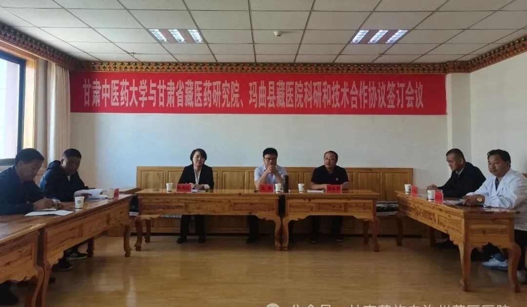 8月21日,甘肃中医药大学与甘南州藏医医院、玛曲县藏医院在我院六楼会议室举行科研和技术合作协议签约仪式,标志着双方在科研合作、技术创新及人才培养等领域迈出了坚实的一步,开启了合作共赢的新篇章。甘肃中医药大学科技处副处长王强、甘肃中医药大学药学院副院长何春雨、州卫健委党组成员陈建红、玛曲县藏医院负责人及我院班子成员、各研究所负责人参加签约仪式。仪式由陈建红主持。 陈建红在致辞中高度评价了甘肃中医药大学在中医药领域的深厚底蕴与卓越成就,并表达了对未来合作的美好憧憬与坚定信心。