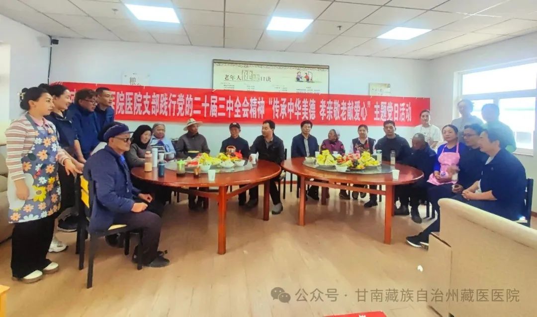 中秋佳节来临之际,9月6日,甘南州藏医医院医院党支部认真贯彻落实党的二十届三中全会精神,开展“践行党的二十届三中全会精神,传承中华美德,孝亲敬老献爱心”为主题的党日活动。通过实际行动,传承和弘扬中华民族尊老、敬老、爱老的传统美德,为合作市敬老院的老人们送去温暖与关怀。
