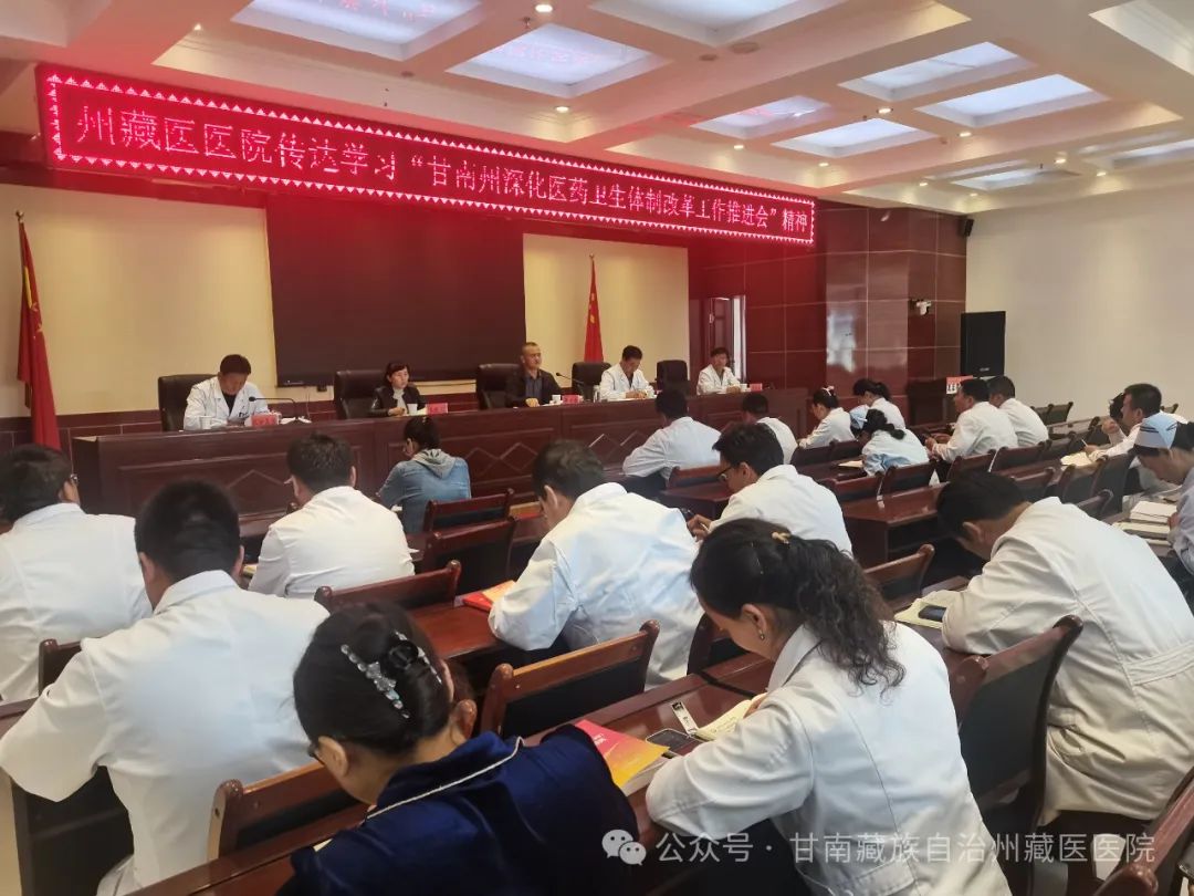 会议传达学习了州委、州政府主要领导对全州深化医药卫生体制改革工作的批示、讲话精神,学习了甘南州深化医药卫生体制改革工作进展情况通报。会议围绕医药卫生体制改革的目标任务、政策措施、实施路径等方面进行了全面阐述。同时,结合我院实际情况,分析了当前医院发展面临的机遇与挑战,安排部署了下一步工作任务。