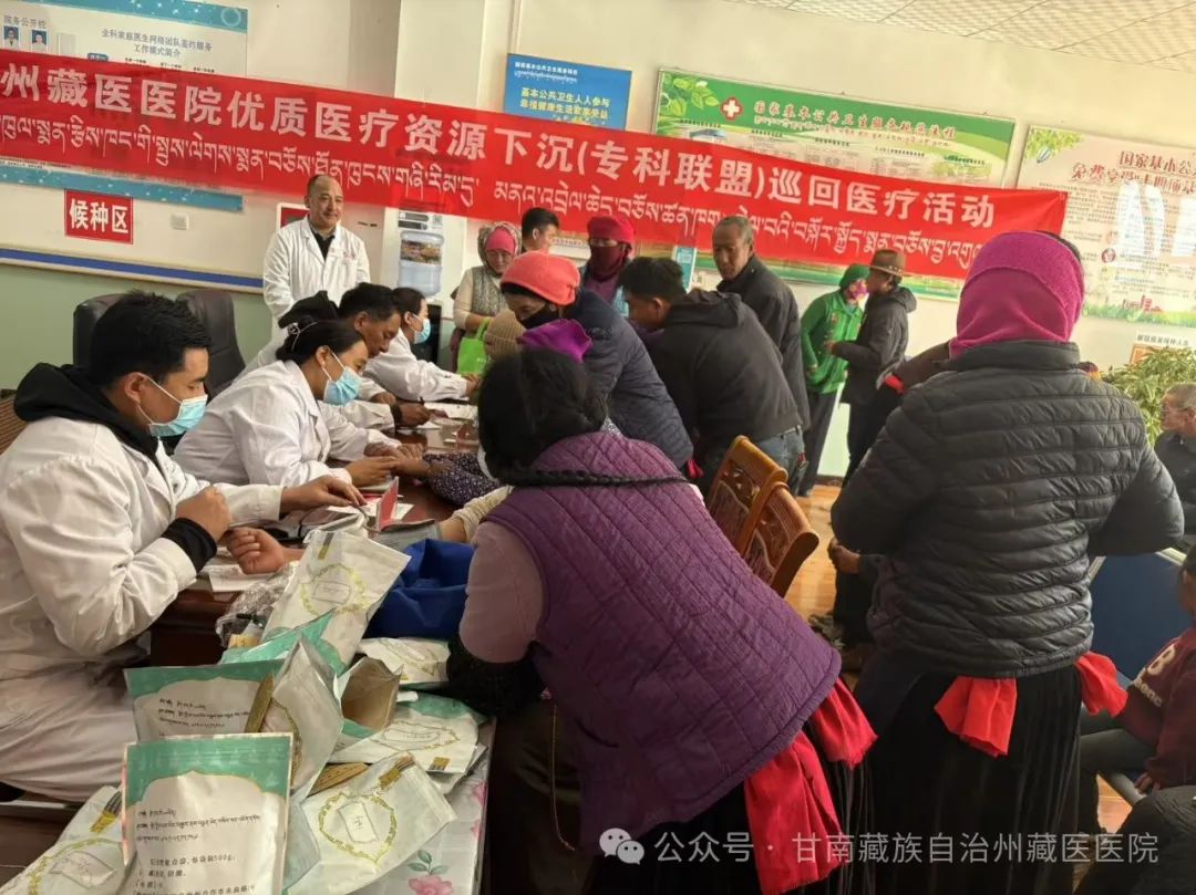 为深入贯彻落实国家关于优质医疗服务资源下沉的政策精神,进一步发挥藏医药专科联盟牵头作用,加强基层医疗卫生服务能力。根据省、州有关文件要求,我院制定优质医疗资源下沉(专科联盟)巡回医疗活动工作制度,逐步深入州内部分乡镇卫生院开展巡回医疗活动。进一步提升基层医疗卫生服务水平,让农牧民群众及时了解国家医疗惠民政策,宣传藏医药文化以及藏医药健康保健知识,提高群众健康意识和自我防病治病能力,使更多的患者能够体验、感受藏医药神奇疗效,充分发挥藏医药独特魅力。11月7日,甘南州藏医医院优质医疗资源下沉(专科联盟)巡回医疗组赴合作市卡加道乡卫生院开展义诊活动。
