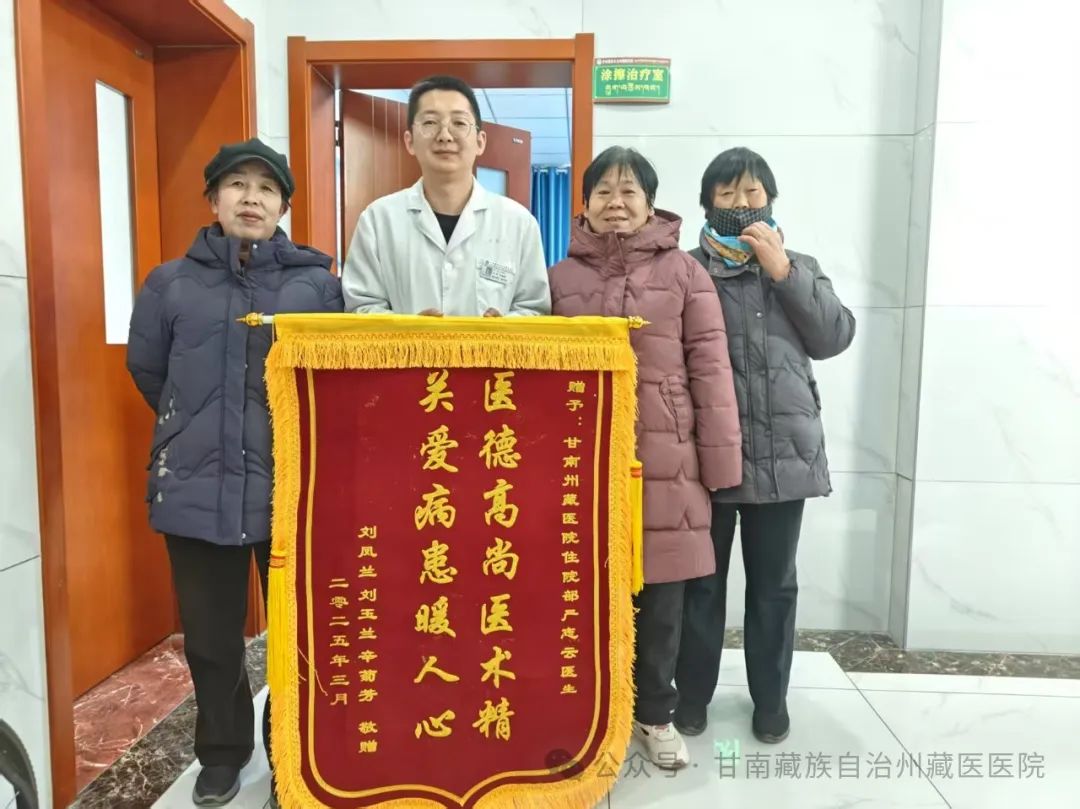 锦旗承载患者的真情,也是对年轻医师的肯定。3月28日,我院药浴外治团队收到了一面“医德高尚医术精 关爱病患暖人心”的锦旗,合作市三位患者借此表达了对年轻医师严志云的感谢和认可。