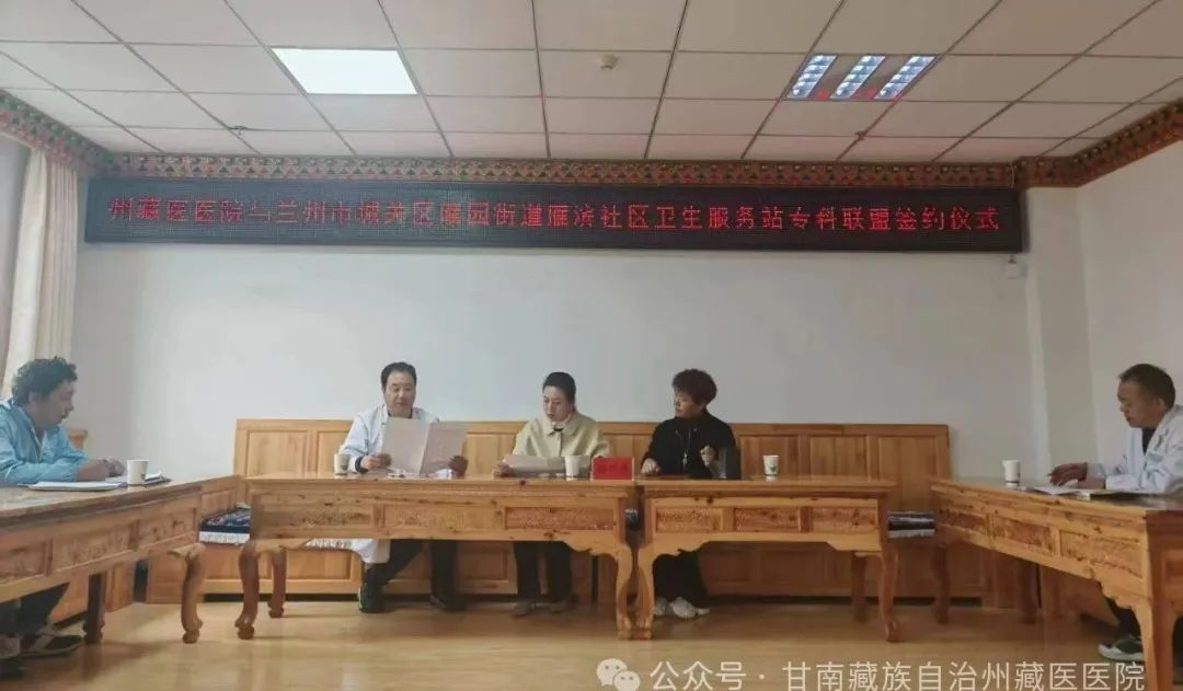 甘南州藏医医院与兰州市城关区雁园街道雁滨社区卫生服务站签订专科联盟协议