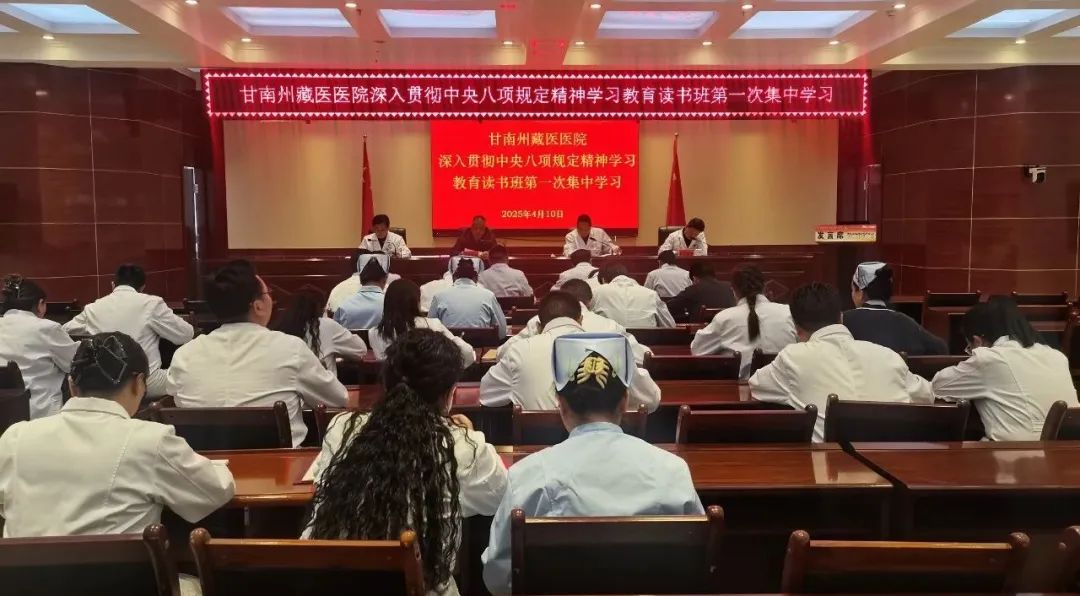 为深入贯彻习近平新时代中国特色社会主义思想,全面落实中央八项规定精神,进一步加强医院党风廉政建设和作风建设,4月10日,甘南州藏医医院举办了深入贯彻中央八项规定精神学习教育读书班第一次集中学习。会议由党总支委员、副院长尕旦木加主持并讲话,医院班子成员、全体党员、中层干部参加。