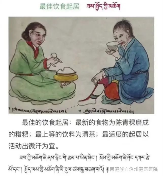 夏(赤巴旺):午间小憩,避免烈日暴晒,饮食增清凉(如薄荷茶)。