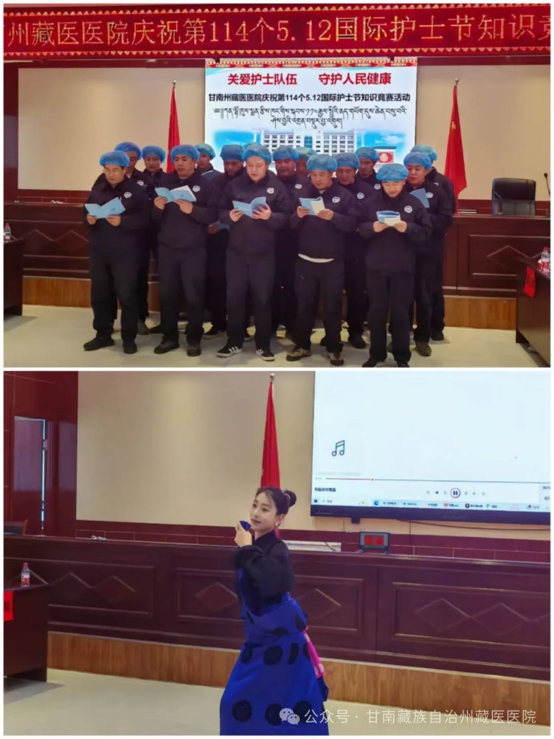 在紧张的竞赛间隙,我院第十六批“仁青佐太”全体炼制人员朗诵”四部医典心经,表达对护理人员的节日祝福。随后,一段精彩的独舞为活动增添了别样色彩。