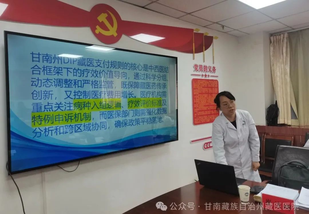 为深入推进DIP支付方式改革,提升医院运营管理水平。5月6日,甘南州藏医医院召开2025年1-3月份DIP支付方式改革运营分析会议。本次会议由我院聘请的医保病案质控专家崔洁娜进行深度剖析与讲解,医院领导班子、各临床科室医护人员及相关职能科室负责人参加会议。