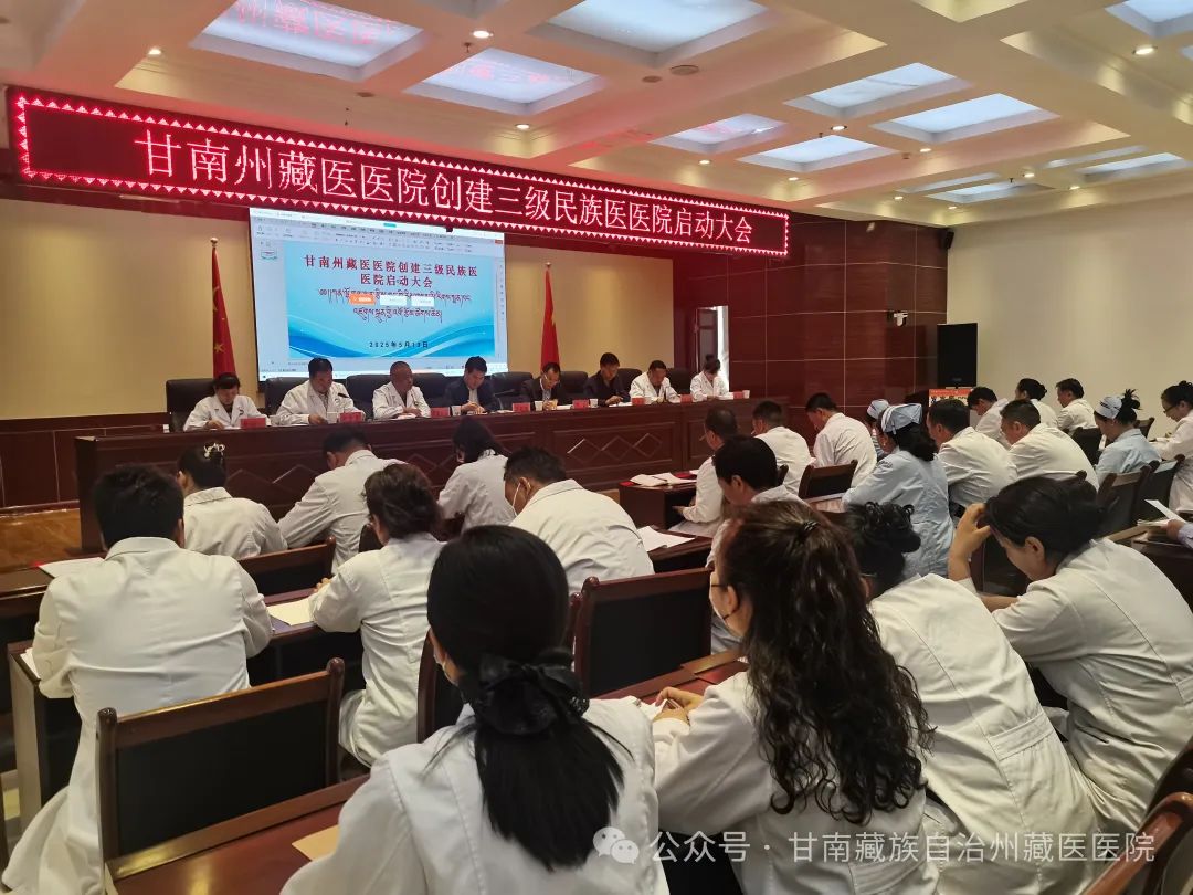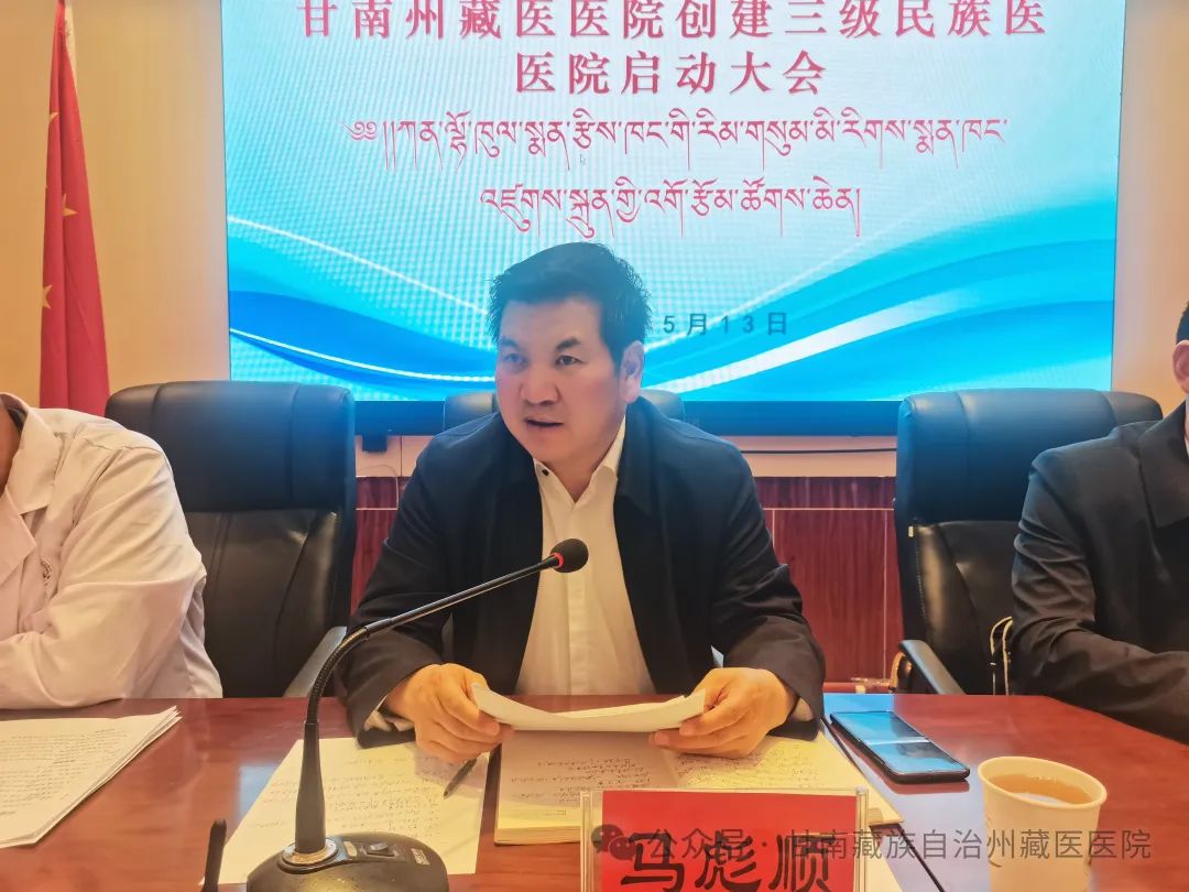 5月13日,甘南州藏医医院召开创建三级民族医医院启动大会,吹响向三级医院目标攻坚奋进的号角,对创建工作进行全面动员和详细部署。州卫健委党组书记、主任马彪顺出席会议并讲话,国内知名医院等级评审辅导专家齐鑫,州卫生健康委四级调研员范孜杰,院领导班子成员、外聘医保质控专家崔洁娜及全体职工参会。会议由副院长金学英主持。