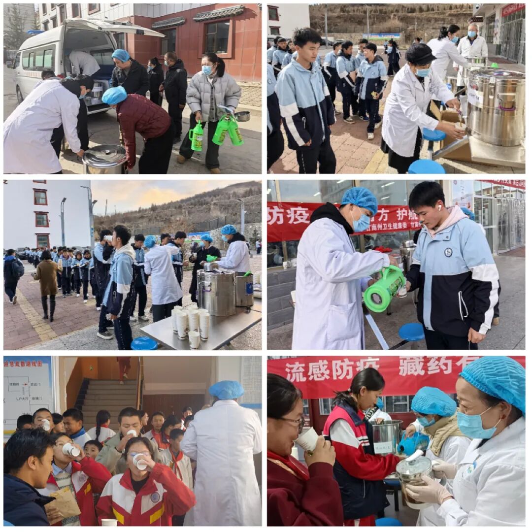 12月6日,为有效应对季节性流感,保障校园教学秩序与师生健康,在州卫健委的安排下我院前往甘南州藏族中学、甘南州中等职业学校开展为期三天的“免费送预防流感藏药汤剂进校园”活动,以藏医药特色服务为2300多名师生筑起健康屏障,用实际行动诠释医者担当。
