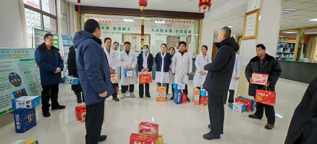 除夕之际,万象更新。在这个阖家团圆的传统佳节,州卫健委党组书记、主任马淑芳在院党总支书记李盛森、副院长尕藏加措的陪同下,深入临床科室、医技部门、窗口岗位和住院病区,亲切看望并慰问春节期间依然坚守在医疗救治和服务一线的全体工作人员,向他们致以诚挚的新春祝福和亲切问候,并送上了精心准备的节日慰问品。
