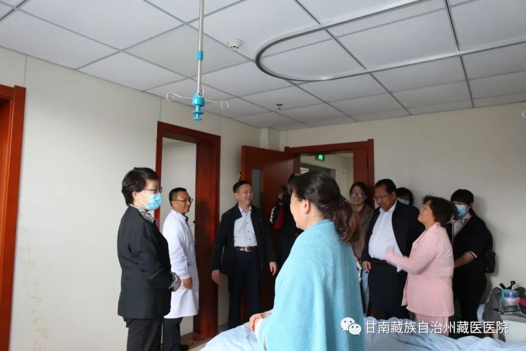 5月30日下午,国家医保局医药服务管理司副司长李淑春一行四人,省医保局党组成员、副局长敬国雷一行三人在州政府副州长王芳,州医保局党组书记、局长斗格尔的陪同下莅临我院调研藏医药工作。院党总支书记丁利锋,副院长道吉仁青、楞本才让及相关科室负责人陪同调研。调研组一行在院领导班子的陪同下先后到藏药房、西药房、制剂中心、藏药浴中心等地实地查看了临床药品、藏药制剂生产线、特色诊疗项目。院领导详细介绍了医院基本运行情况、藏医诊疗项目纳入医保情况、藏医诊疗项目的临床效果。汇报了院内制剂和藏药饮片现状及申请纳入医保目录等相关工作中面临的困难和问题。