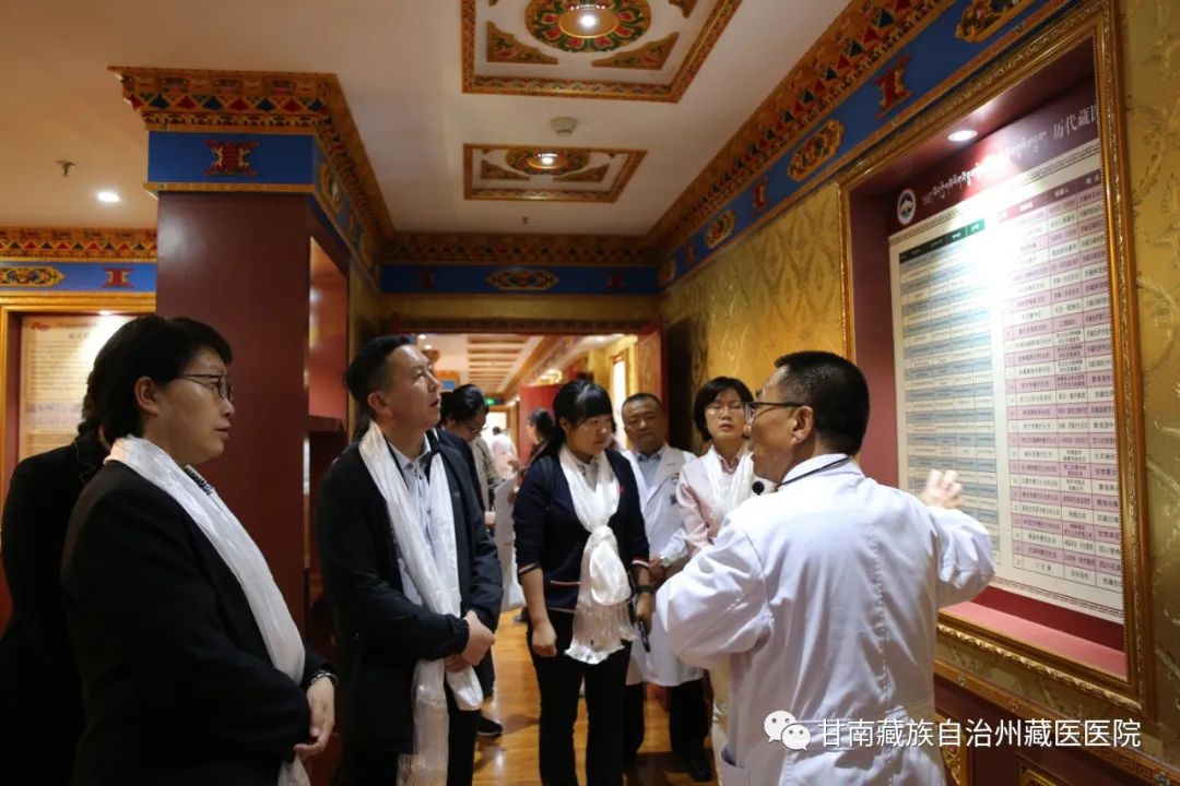 调研组一行饶有兴致的参观了藏医药文化展馆,馆内独具民族特色的装饰风格,一幅幅展现藏医药发展史及医院文化内涵的图片、唐卡,陈列有序的藏医传统器械、藏药材、院内藏药制剂产品使大家深切感受到藏医药悠久的历史和深厚的文化。