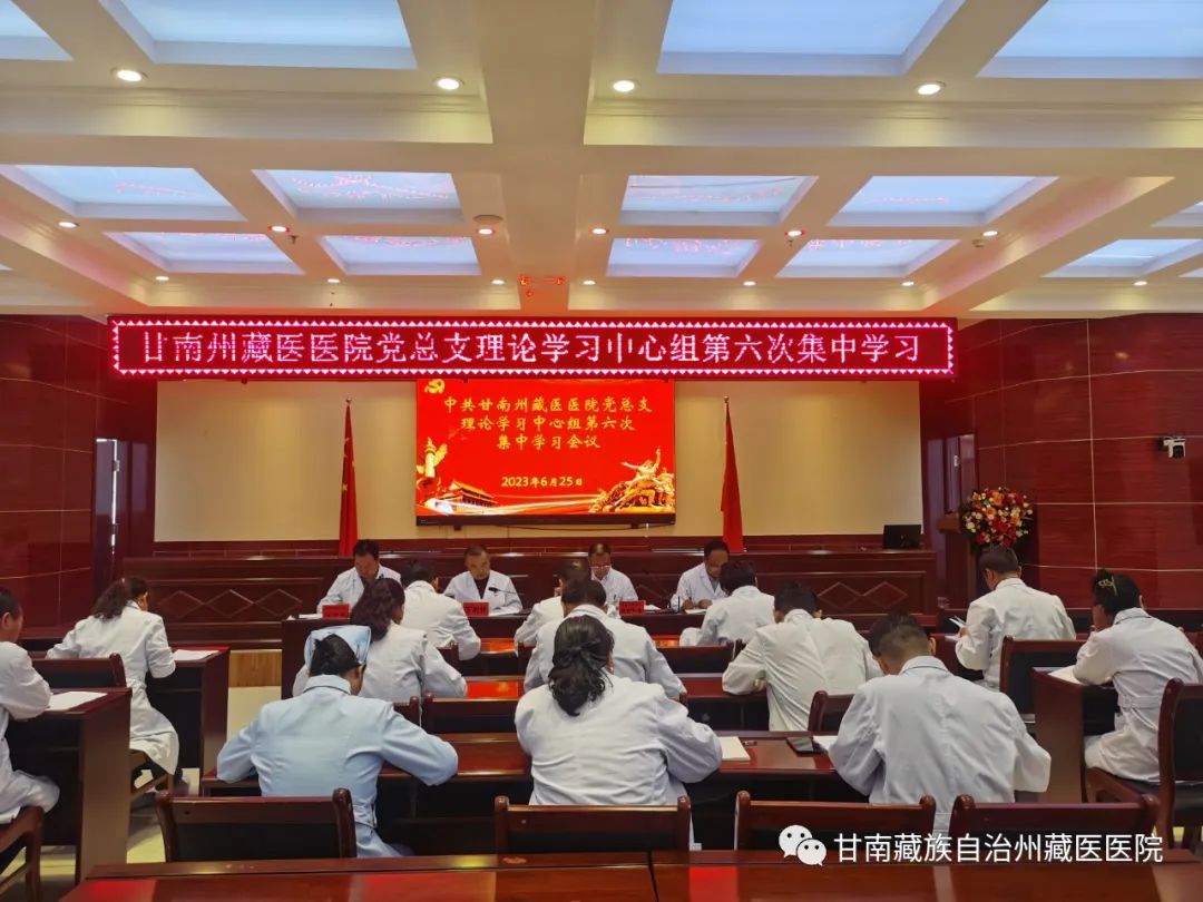 根据医院党总支理论中心组集体学习计划,6月25日下午,甘南州藏医医院召开党总支理论学习中心组集体学习会议,会议由党总支书记丁利锋主持,院领导班子成员出席会议、全体中层干部列席。